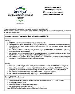 - Certain people should take their first dose of Brekiya autoinjector in their healthcare provider’s office or in another medical setting.